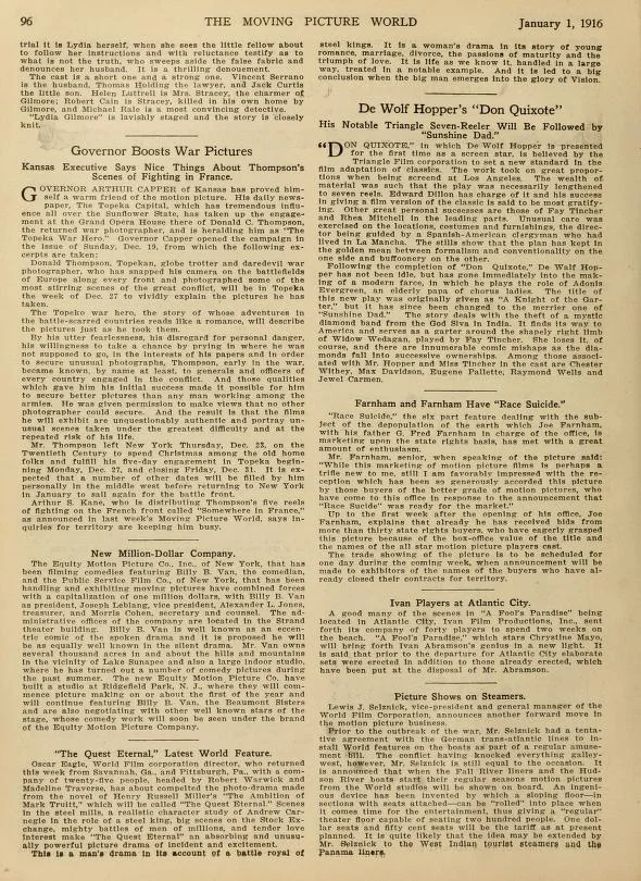 Moving Picture World - January 1, 1916Equity Motion Picture Co. “million dollar company” Moving Picture World – January 15, 1916Ad placed by Equity Motion Picture Co. soliciting manuscripts
