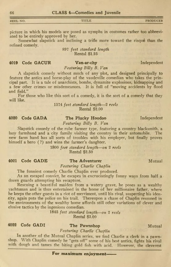 Descriptive Catalogue of Kodascope Library Motion Pictures - 1926Films Mentioned: “Van-ar-chy,” “The Plucky Hoodoo”