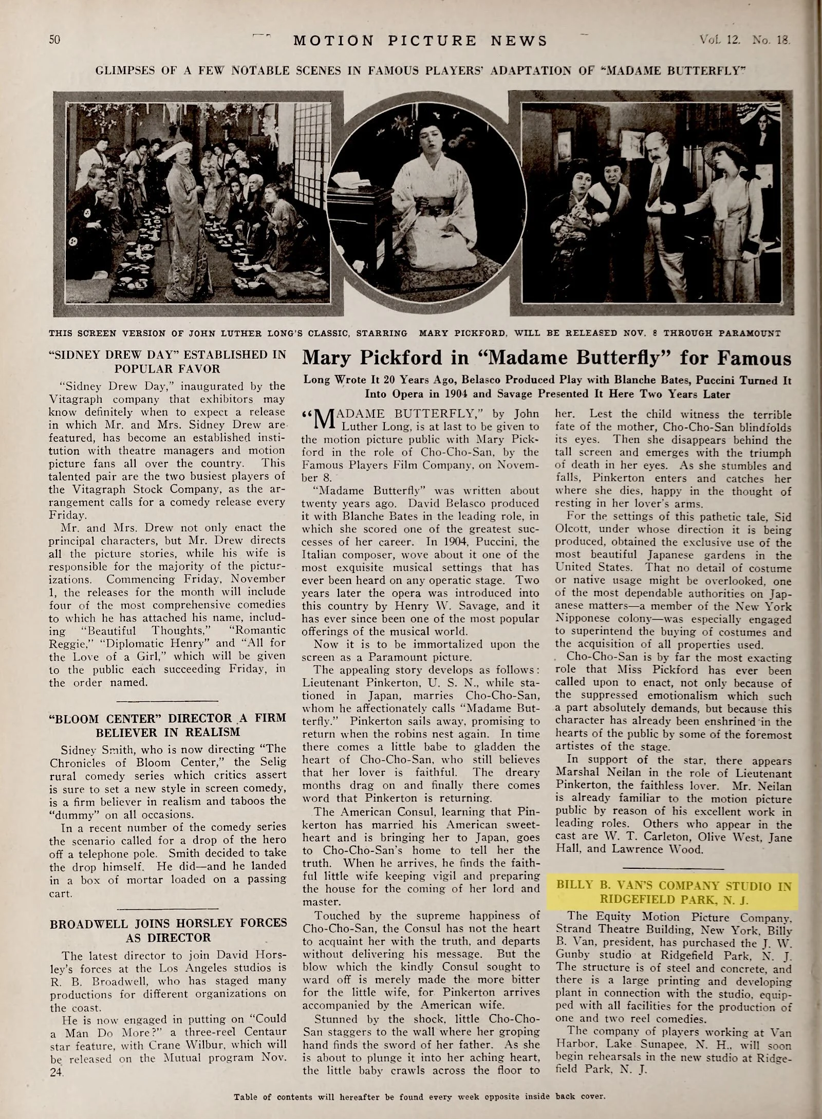 The Equity Motion Picture Company, Strand Theatre Building, New York, Billy B. Van president, has purchased the J. W. Gunby studio at Ridgefield Park. N. J. The structure is of steel and concrete, and there is a large printing and developing plant in connection with the studio, equipped with all facilities for the production of one and two reel comedies.