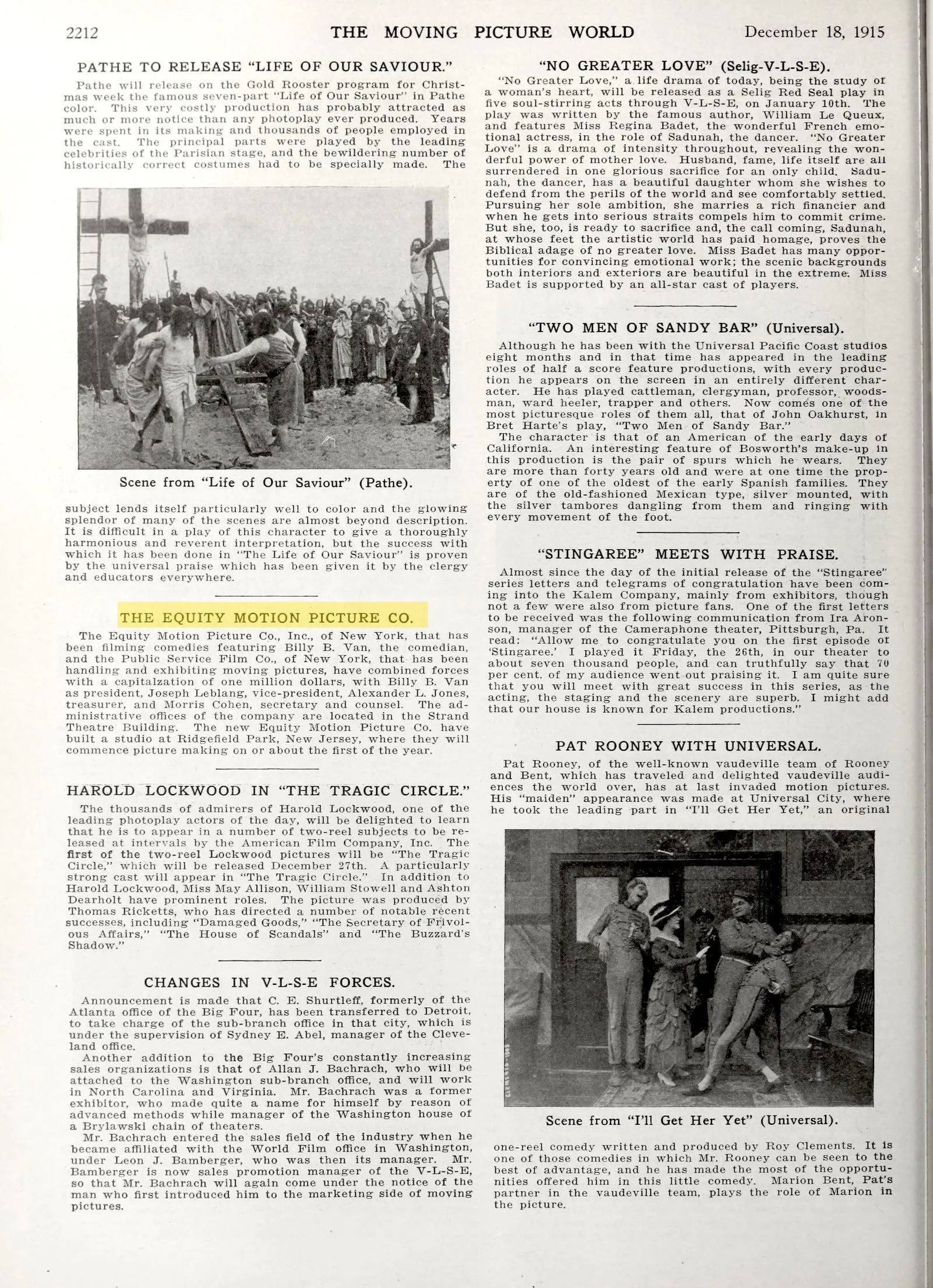 The Equity Motion Picture Co., Inc., of New York, that has been filming comedies featuring Billy B. Van, the comedian, and the Public Service Film Co., of New York, that has been handling and exhibiting moving pictures, have combined forces with a capitalzation of one million dollars, with Billy B. Van as president, Joseph Leblang, vice-president, Alexander L. Jones, treasurer, and Morris Cohen, secretary and counsel. The administrative offices of the company are located in the Strand Theatre Building. The new Equity Motion Picture Co. have built a studio at Ridgefield Park, New Jersey, where they will commence picture making on or about the first of the year.Source Files