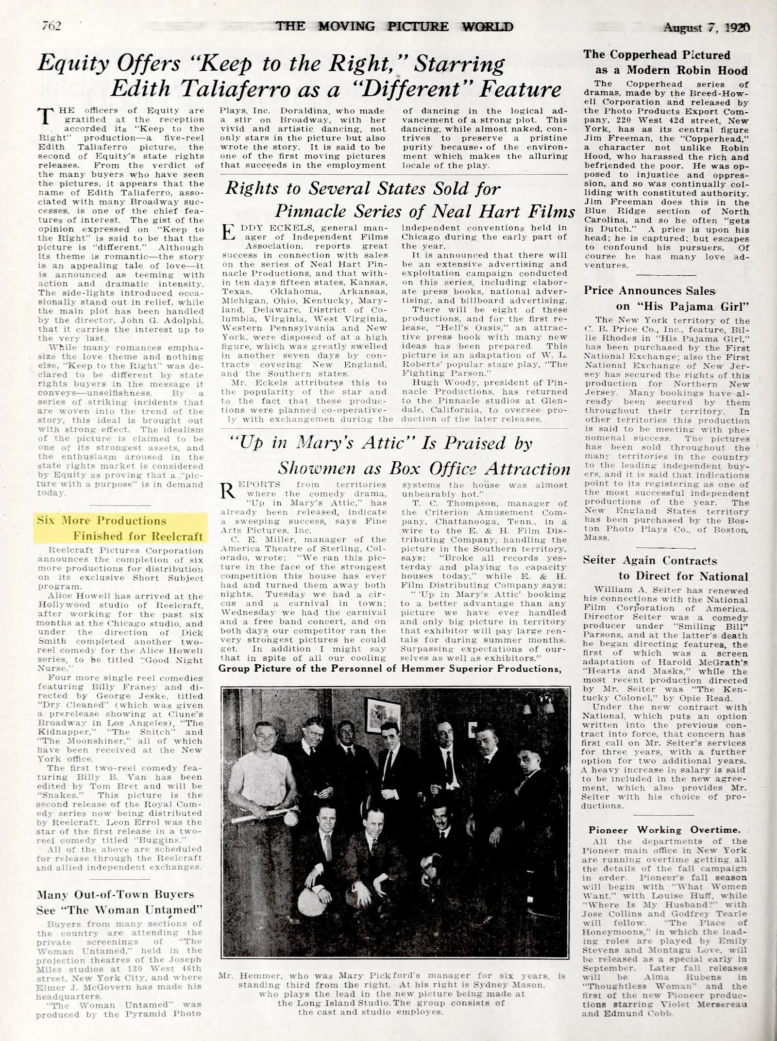 Four more single reel comedies featuring Billy Franey and directed by George Jeske, titled “Dry Cleaned” (which was given a prerelease showing at Clune’s Broadway in Los Angeles), “The Kidnapper,” “The Snitch” and “The Moonshiner,” all of which have been received at the New York office.
