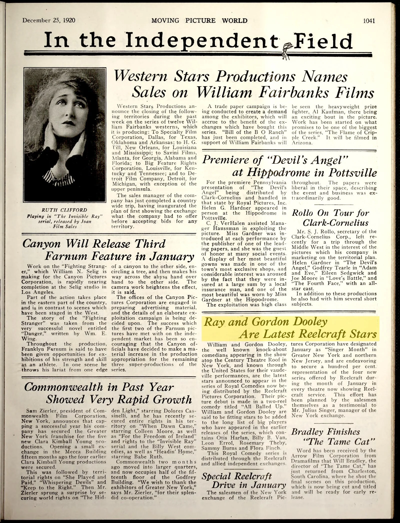 William and Gordon Dooley, the well known knock-about comedians appearing in the show atop the Century Theatre Roof in New York, and known through the United States for their vaudeville performances, are the latest stars announced to appear in the series of Royal Comedies now being distributed by the Reelcraft Pictures Corporation. Their picture debut is made in a two-reel comedy titled ”All Balled Up.” William and Gordon Dooley are said to be fitting stars to be added to the long list of big players who have appeared in the earlier releases of the series, which contains Otis Harlan, Billy B. Van, Leon Errol, Rosemary Theby, Sammy Burns and Flora Finch.
