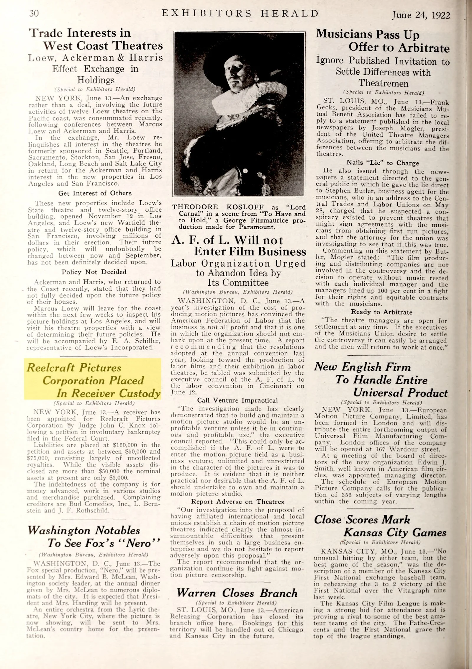 (Special to Exhibitors Herald) NEW YORK, June 13— A receiver has been appointed for Reelcraft Pictures Corporation by Judge John C. Knox following a petition in involuntary bankruptcy filed in the Federal Court.
