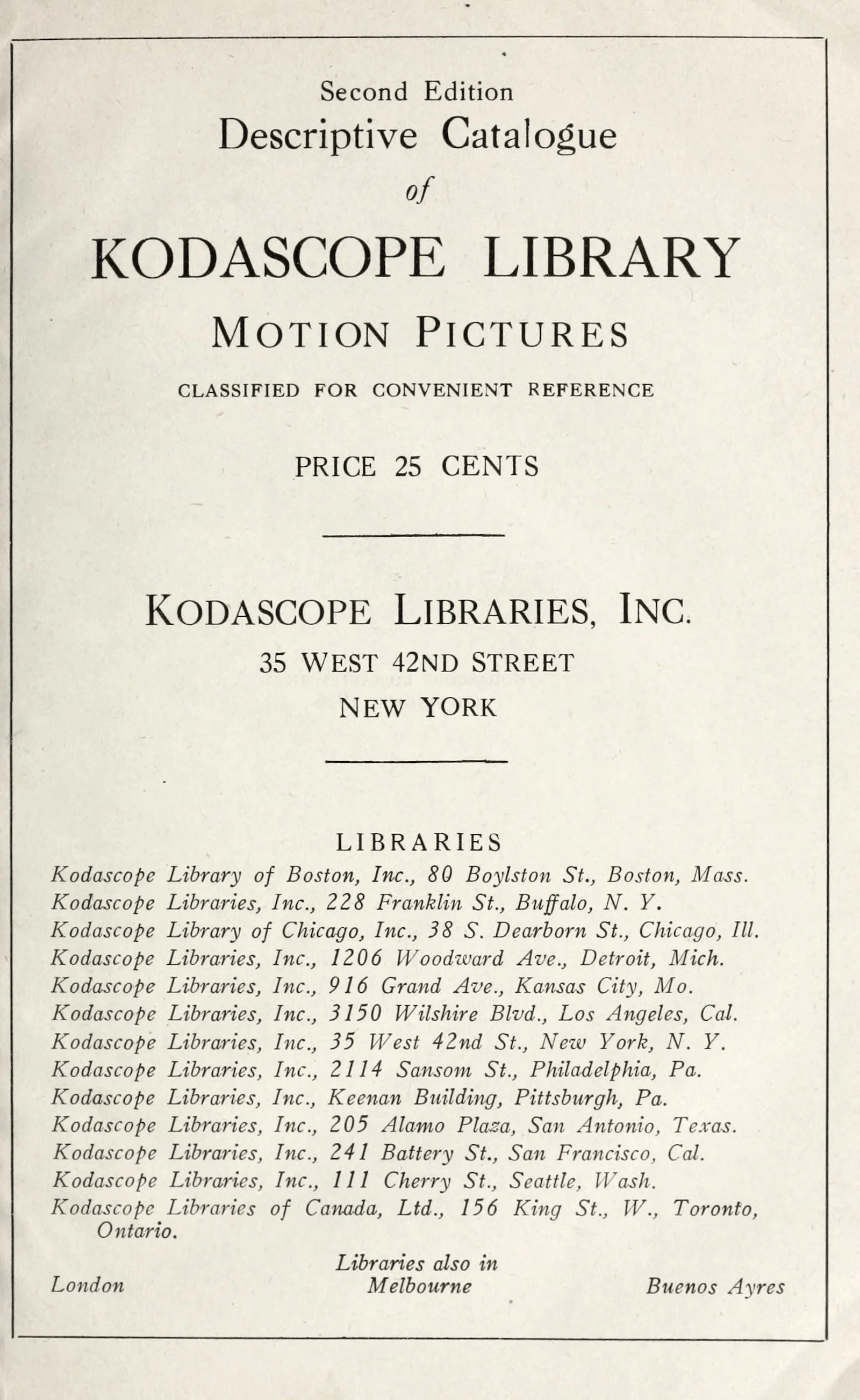 Descriptive Catalogue of Kodascope Library Motion Pictures, Page 1
